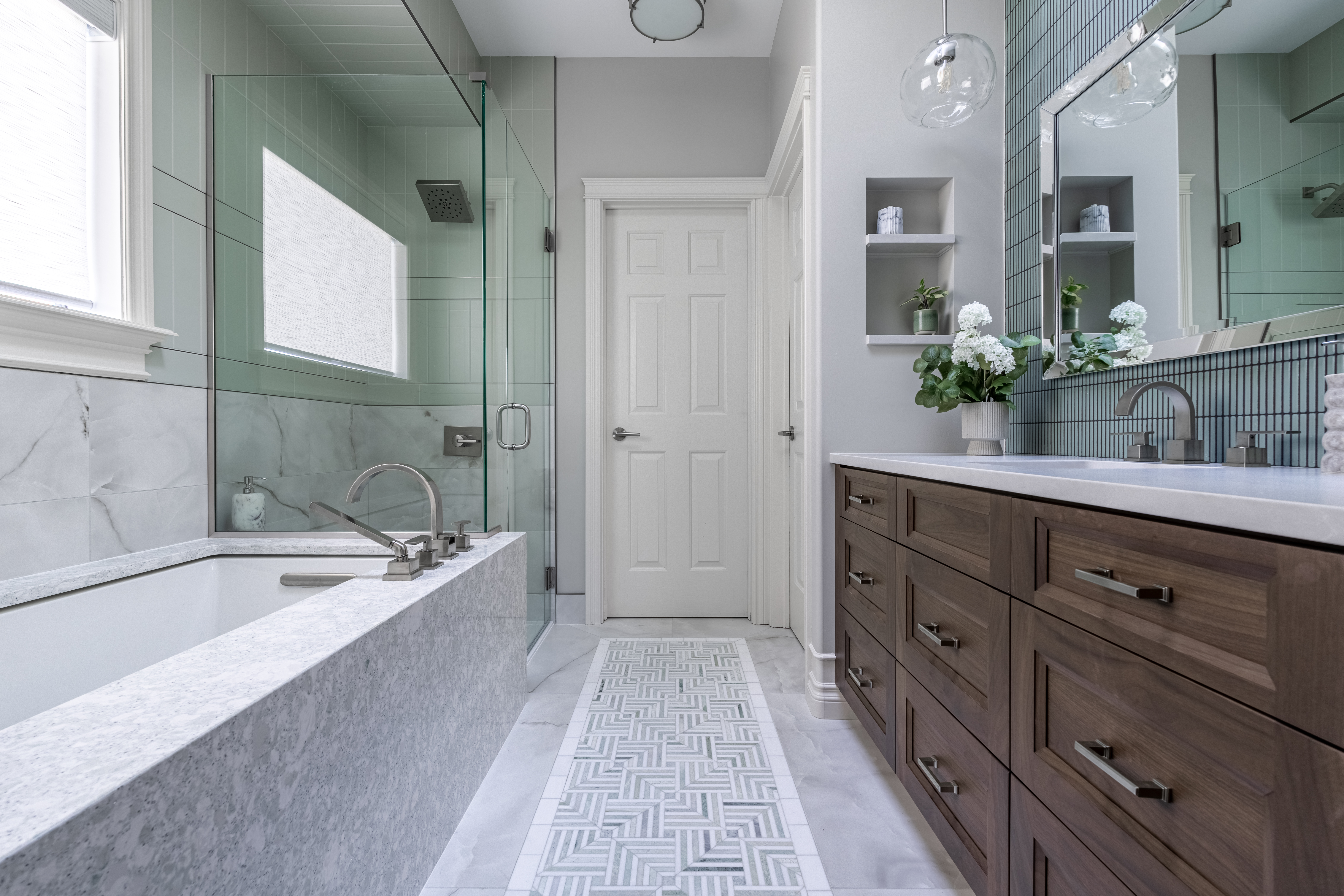 The things we love about it: more efficient use of space, the long, very comfortable tub, the heated towel rack, the heated floor, the double sinks, and the shower. It’s our own personal spa. It is truly stunning.- Former Client -